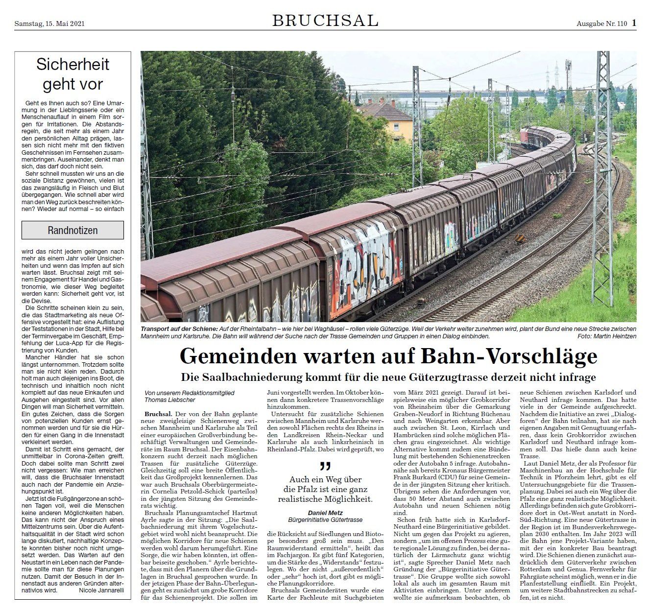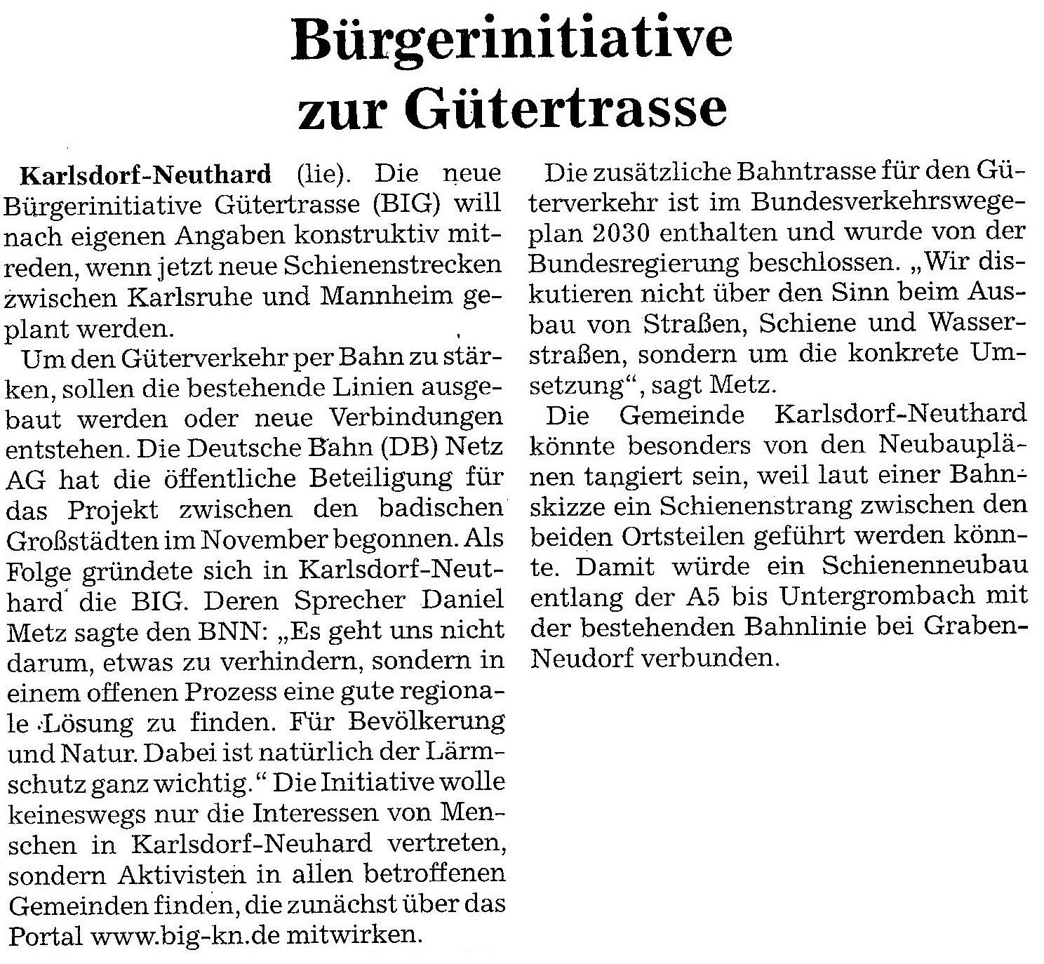 Artikel BNN vom 19. April 2016 - Arbeitsgruppe Schienengüterverkehr
